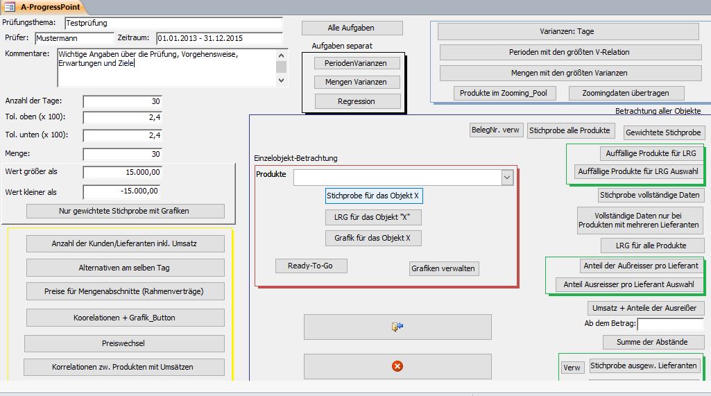 Eine regelmäßige Überwachung von Geschäftsvorgängen kann mit Hilfe eines Continous Auditing Cockpits erfolgen. Dort werden die benötigten Funktionen, Kontrollen, Toleranzwerte und Berechnungen als aufrufbare Reports hinterlegt.